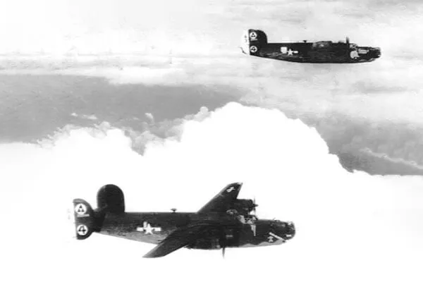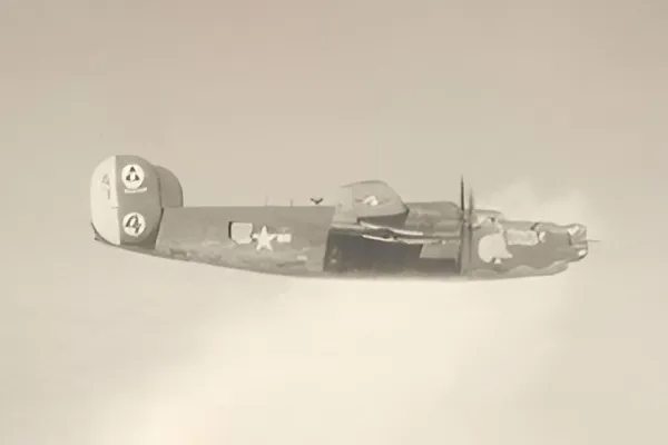su posade bombardera zamijetile, nisu napale formaciju bombarderske grupe. Zrakoplov B-24 722. eskadrile, koji je letio na poziciji 2 prvog vala, zaostao je i izbacio bombe te se vratio u formaciju. Ubrzo je isti zrakoplov opet napustio formaciju desnim zaokretom i u 13.16 sati u spirali počeo brzo gubiti visinu iznad neprijateljskog teritorija. Kako je zrakoplov ispao iz formacije koju više nije mogao dostići, posada zrakoplova zauzela je smjer povratka prema jugu. U službenom izvješću Missing air crew report – MACR 3886 nisu navedeni problemi s motorima, iako je u bilješkama ostalih susjednih posada zrakoplova iz formacije navedena pojava dima iz vanjskog lijevog motora.